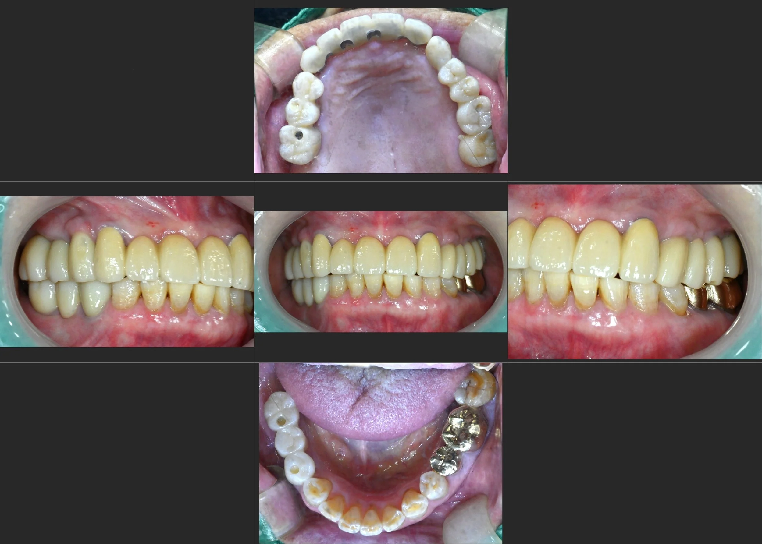Hopeless teeth were extracted, and implant-supported restorations were planned to re-establish occlusal stability.
