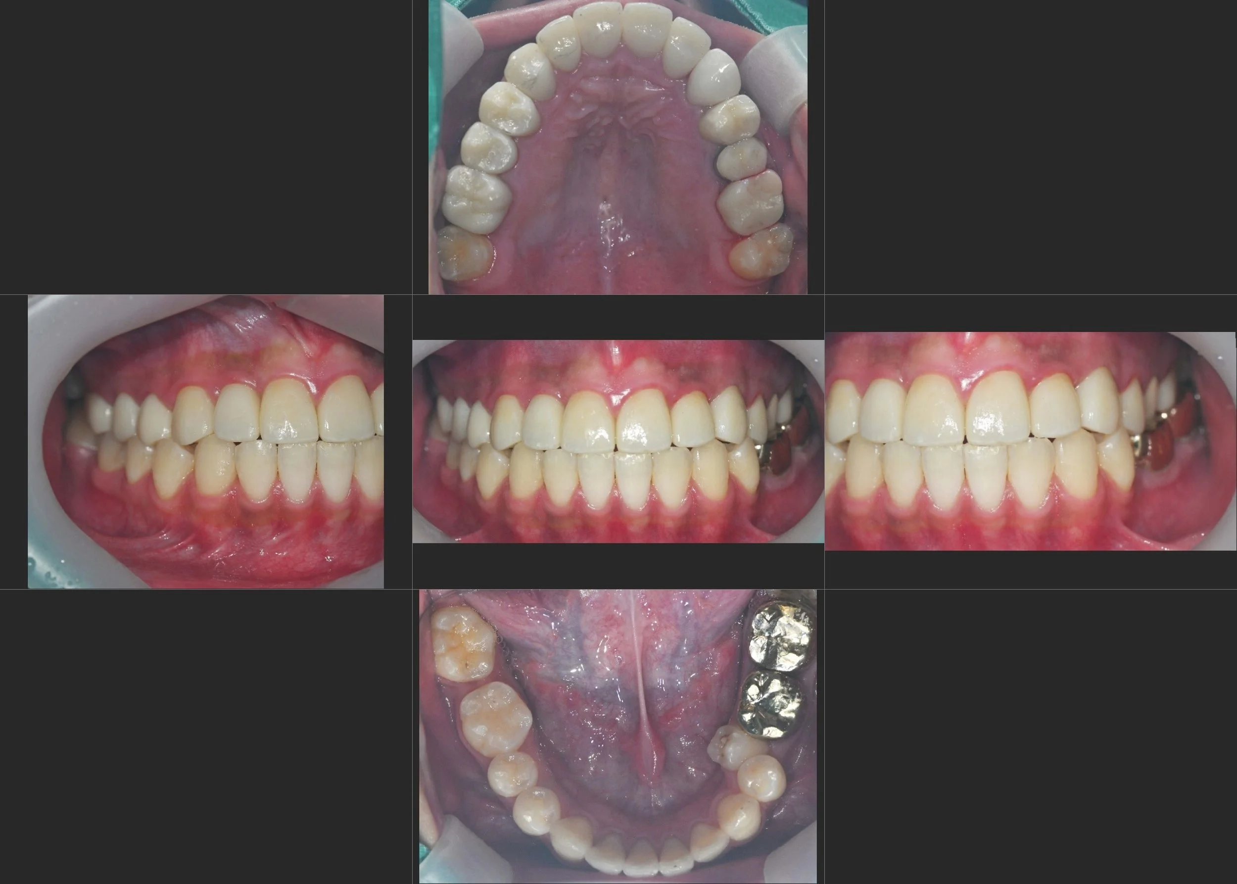 Prosthetic Rehabilitation: All-ceramic crowns were utilized to restore the severely decayed teeth. By meticulously adjusting the morphology of the final crowns, we were able to successfully harmonize the upper and lower midlines and correct the perceived facial asymmetry.