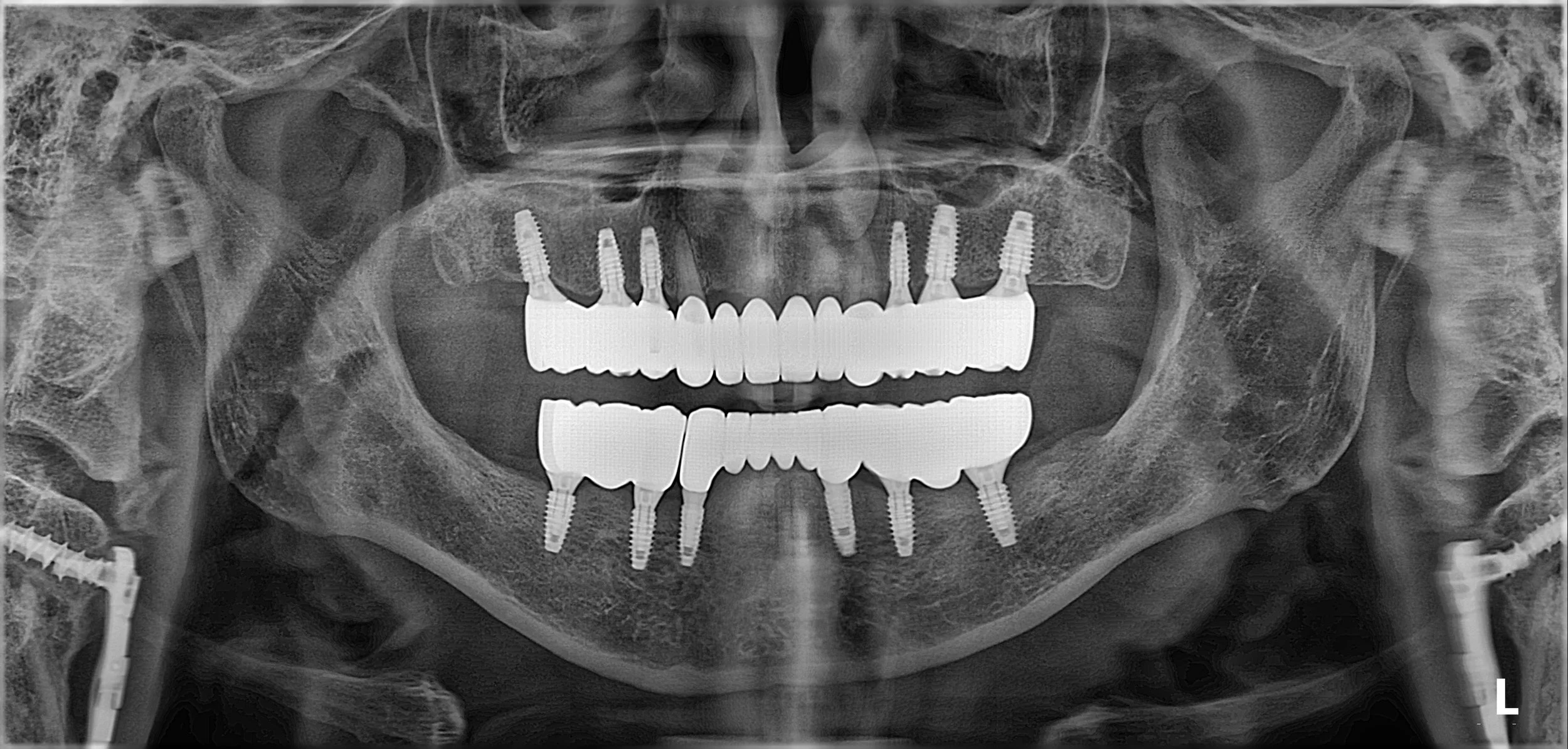 Prosthetic Integration: The natural anterior teeth were restored and harmonized with the posterior implant-supported bridges. By integrating natural teeth with implants, we achieved a balance between surgical simplicity and biological preservation.