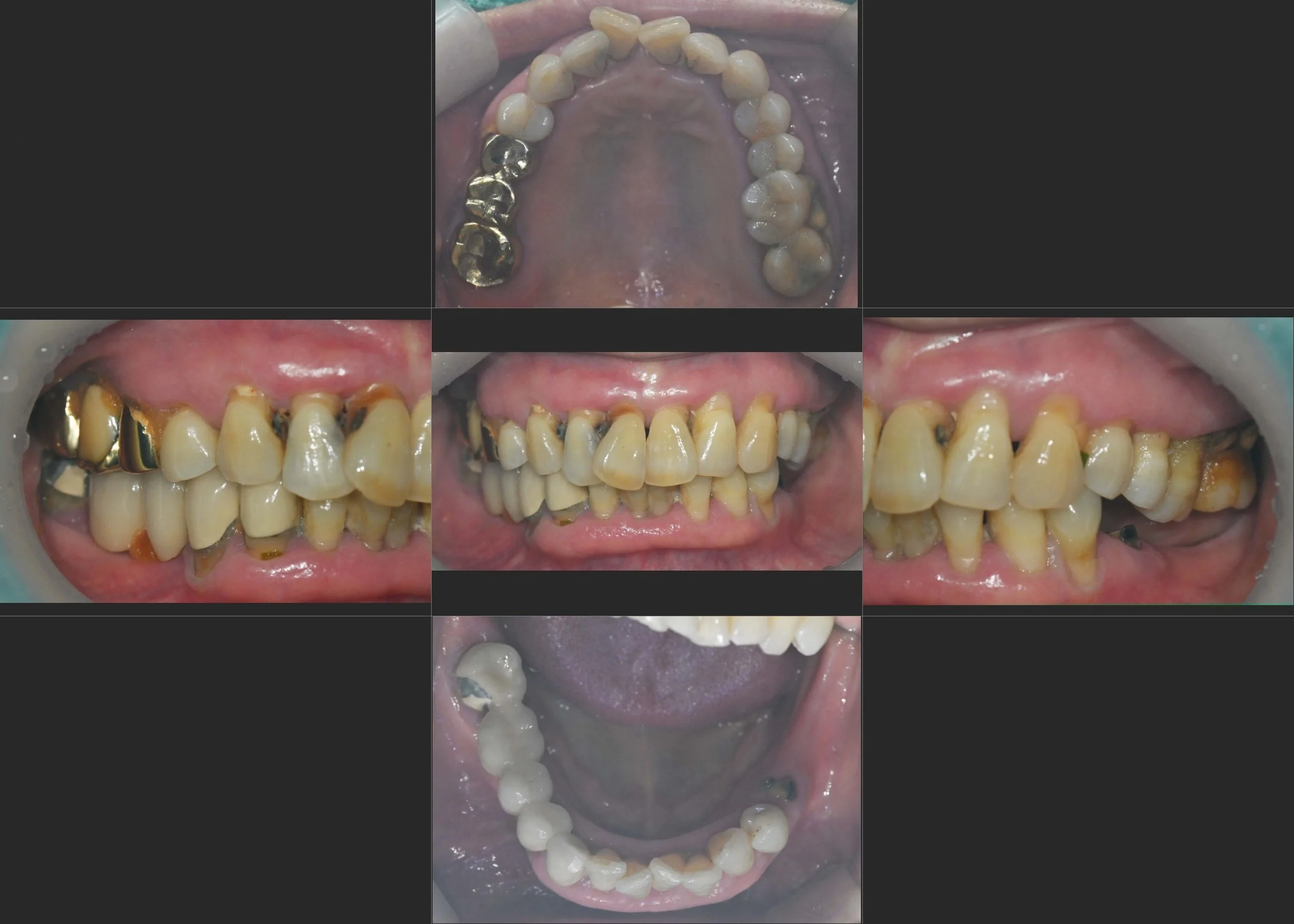 Failing Prosthetics: Existing crowns and bridges were ill-fitting, leading to secondary caries and periodontal issues.